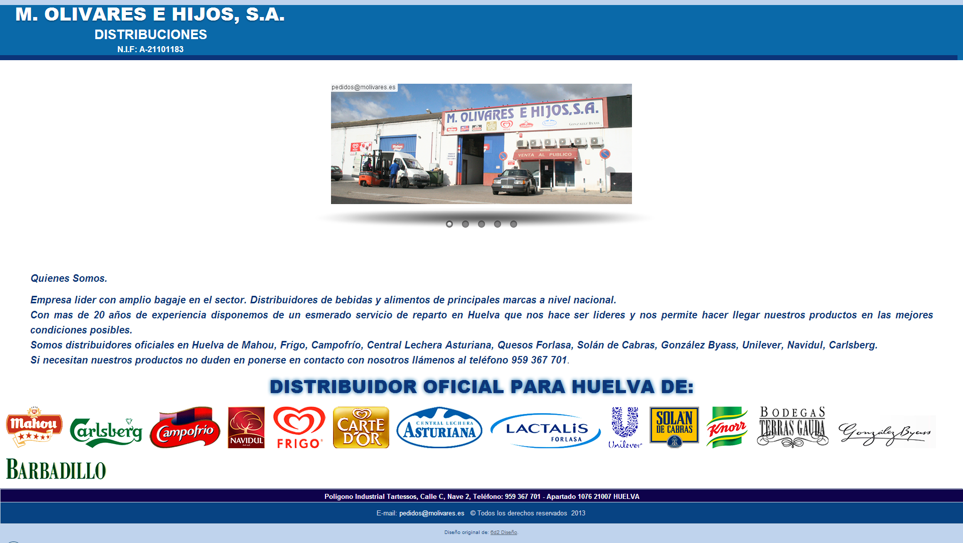 Distribuidor de: Mahou, Campofrío, Central Lechera Asturiana, Solán de Cabras, González Byass, Unilever, Navidul, Carlsberg. molivares.es
